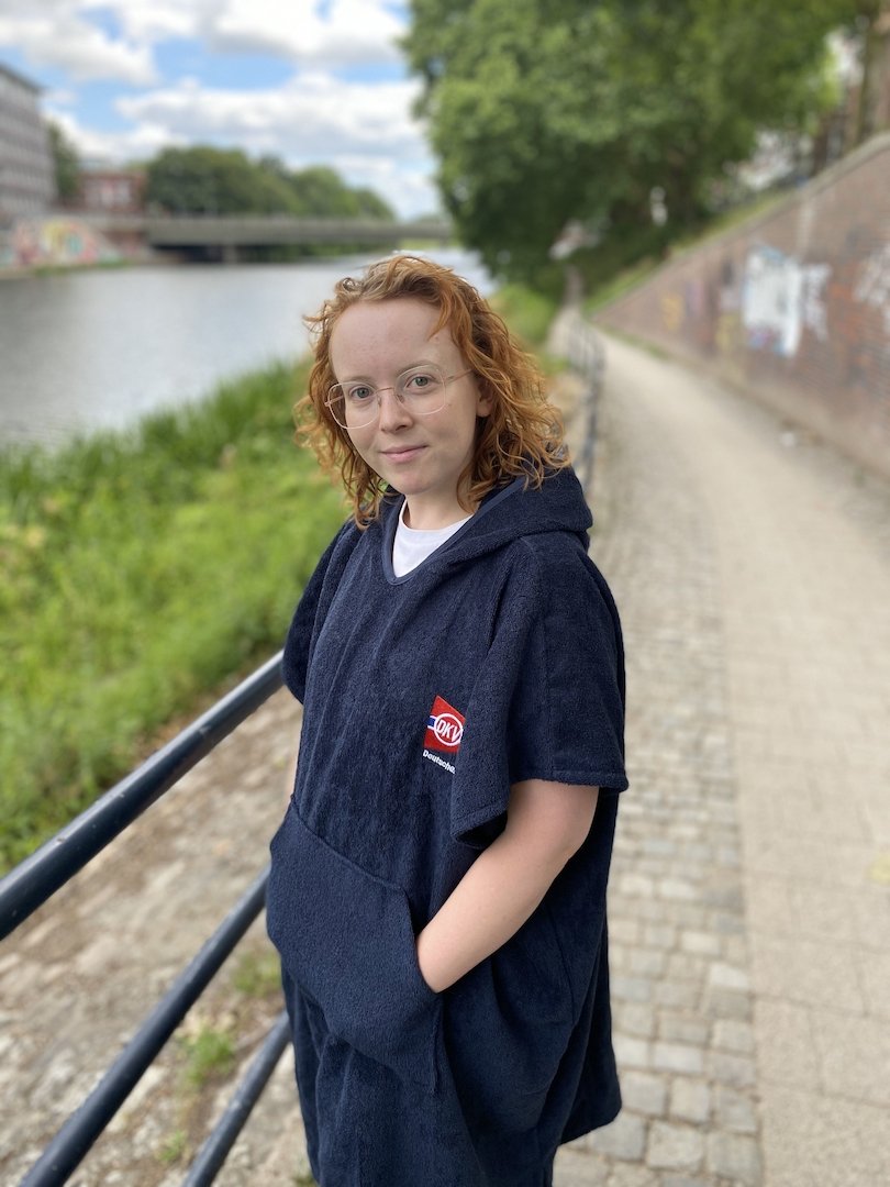 Der praktische DKV Frottee-Poncho ermöglicht das diskrete Umziehen vor oder nach einer Kanufahrt an belebten Ein- und Ausstiegsstellen.