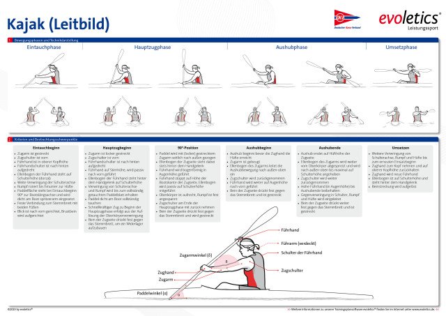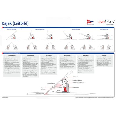 Das großformatigen DKV-Leitbild-Poster zeigt anschaulich und detailreich die Basics der grundlegenden Bewegungsabläufe. So sind sie hilfreich beim Trainingseinstieg und unterstützen die Übenden bei der Selbstkontrolle.Die Grafiken entsprechen der DKV-Rahmenkonzeption Kanu-Rennsport und wurden von der Firma Evoletics zusammen mit den Bundestrainerinnen Juliane Marek und Tina Kövari exklusiv für den DKV entwickelt.