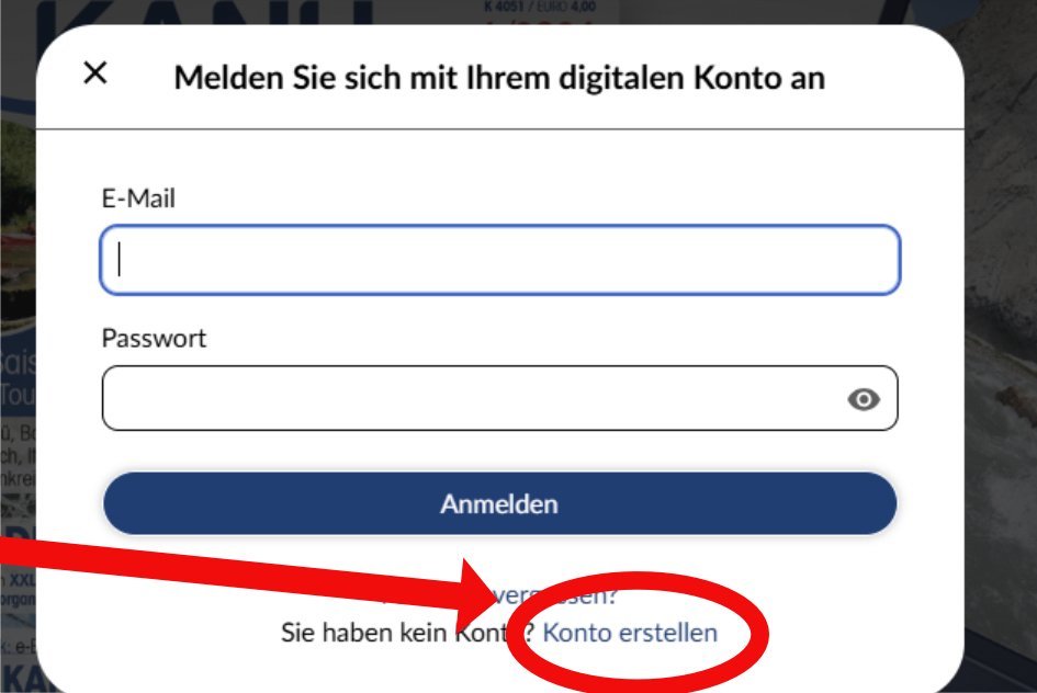| Schritt 1 Damit Sie auf die digitale Ausgabe des KANU-SPORT zugreifen können, müssen Sie zuerst Ihren Account aktivieren. Hierfür besuchen Sie die Online-Version des digitalen KANU-SPORT unter der folgenden URL: https://epaper.kanu-sport.online |
